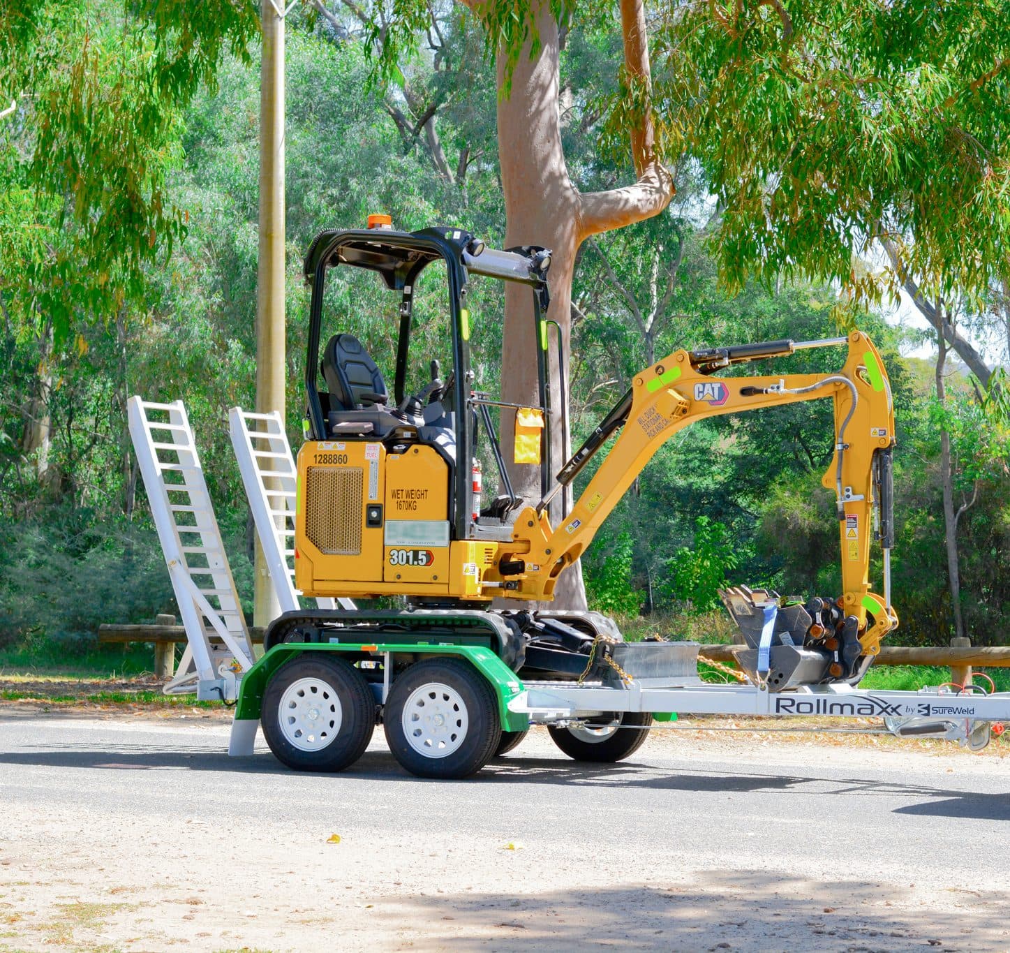 Due to impressively low tare weights Rollmaxx Aluminium Plant Trailers allow greater flexibility in the transportation of Mini Earthmoving Equipment.